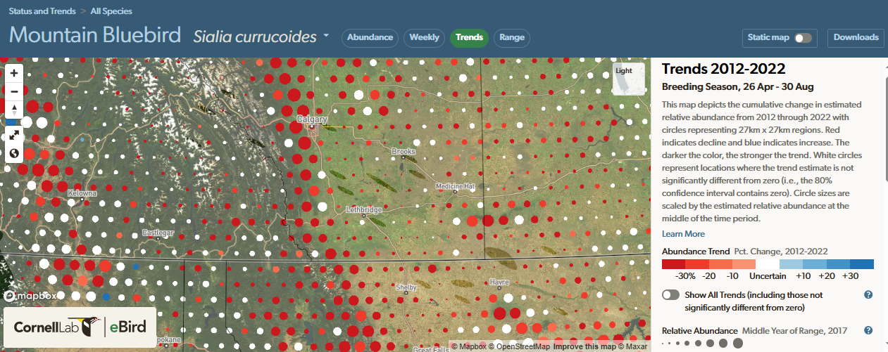 Together, this means Southern Alberta is both significant for Mountain Bluebirds and sensitive to changes.
